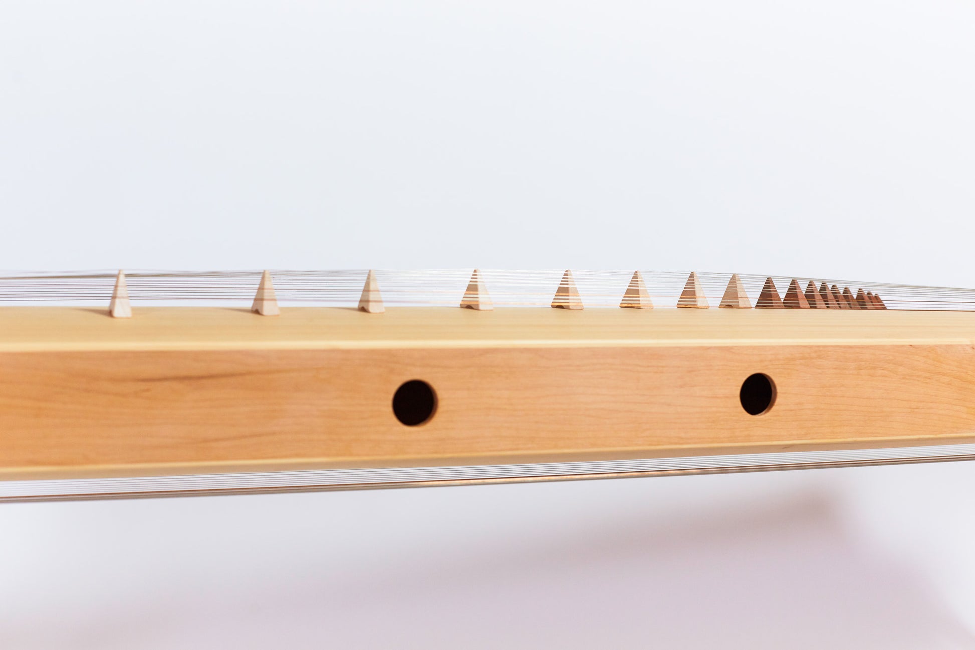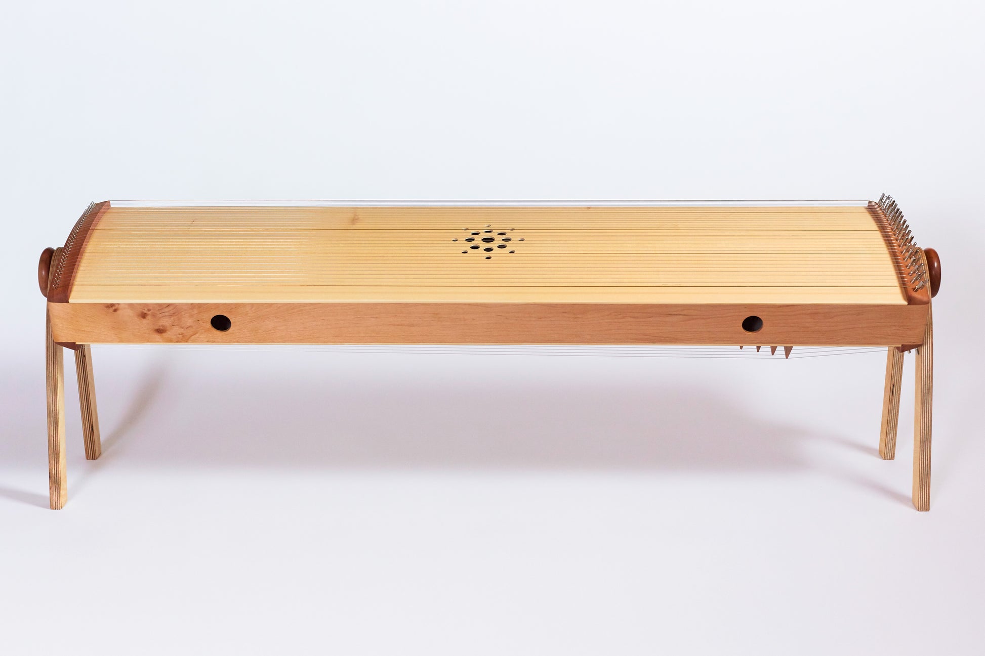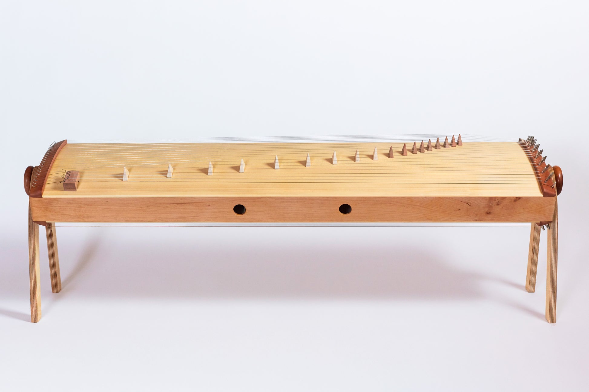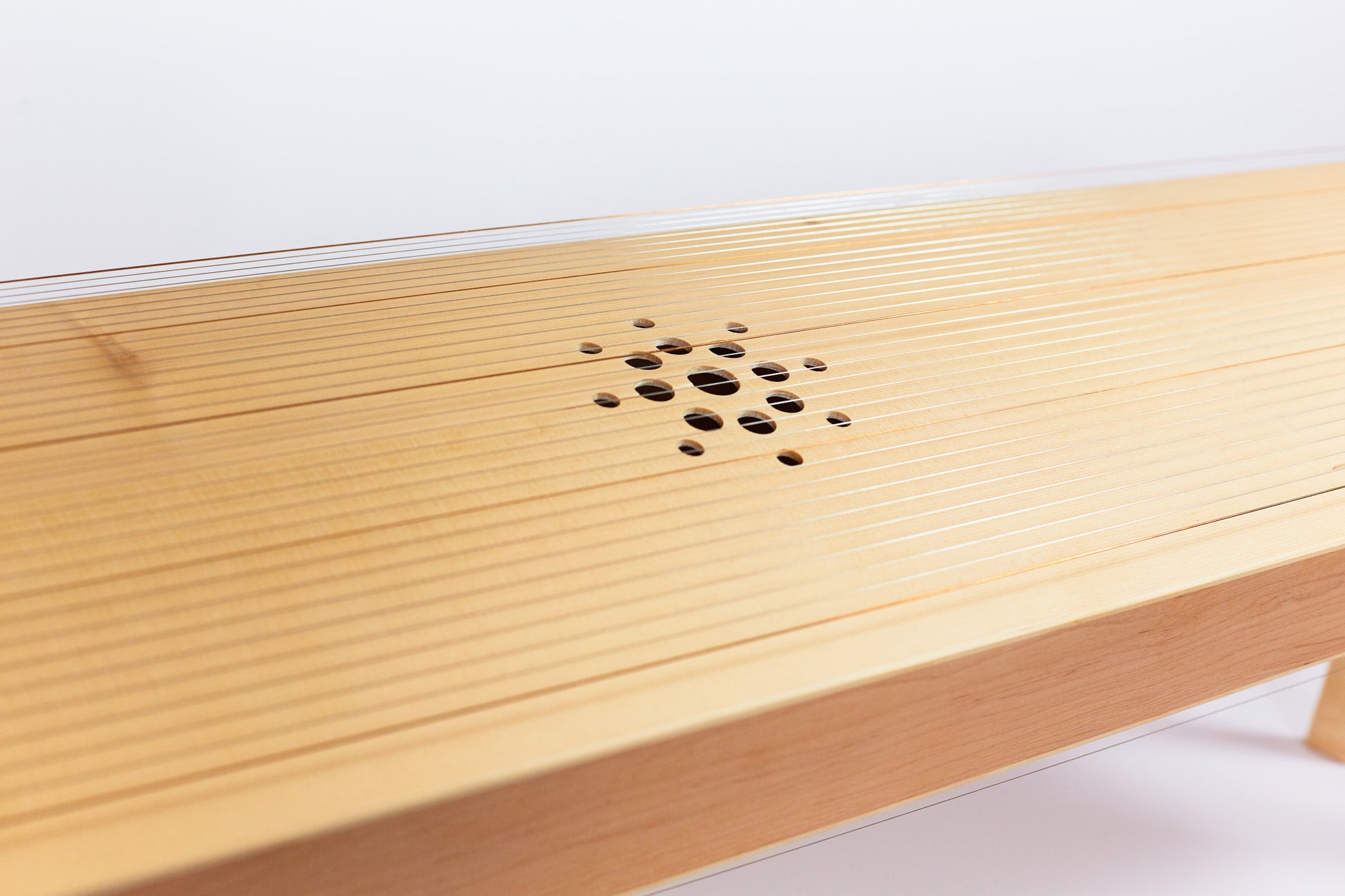 The ko-ta-mo is a mixture of three different instruments: koto, tambura, and monochord. The monochord dates back to Pythagoras and is therefore of European origin, the tambura is an Indian accompaniment instrument, and the koto is a Japanese melody instrument.