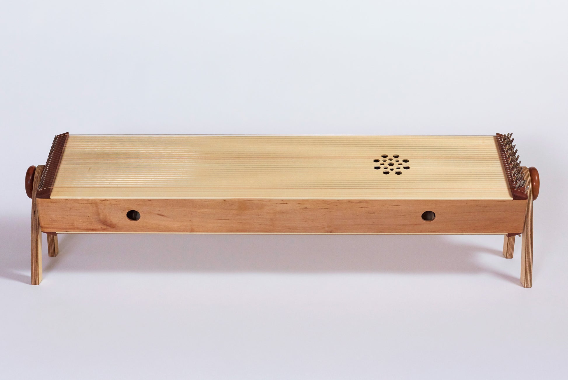The double monochord has two string levels with two different fundamental tones that are in a fifth relationship to each other. You can play both levels individually or simultaneously. The overall sound of the double monochord is a little more powerful and richer in overtones than the monochords strung on one side due to the large number of strings. When playing with other instruments, the different fundamental tones give you a little more scope for creativity in the accompaniment.