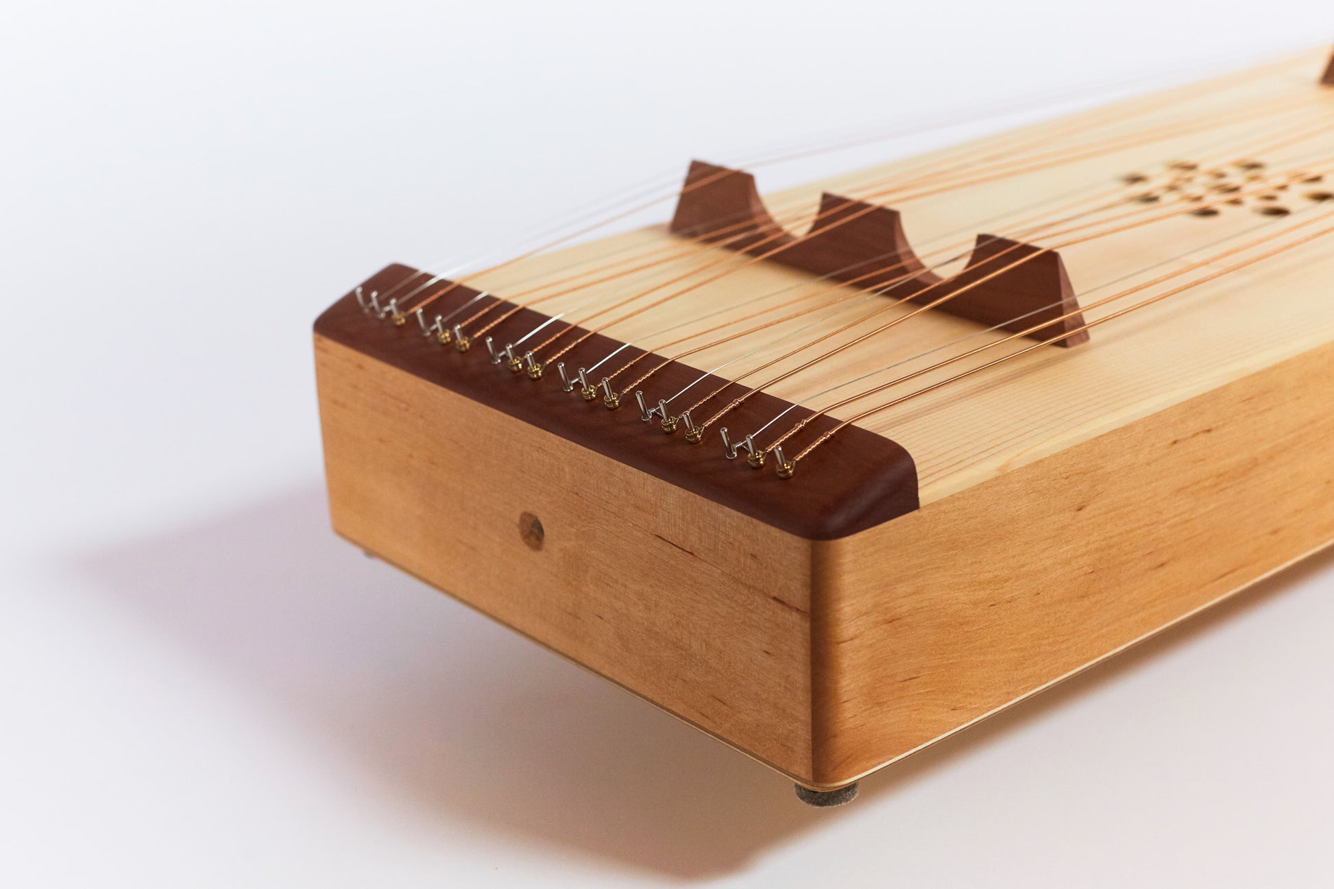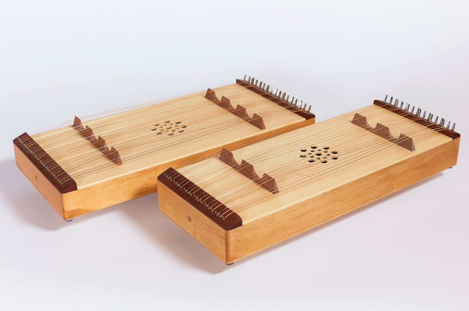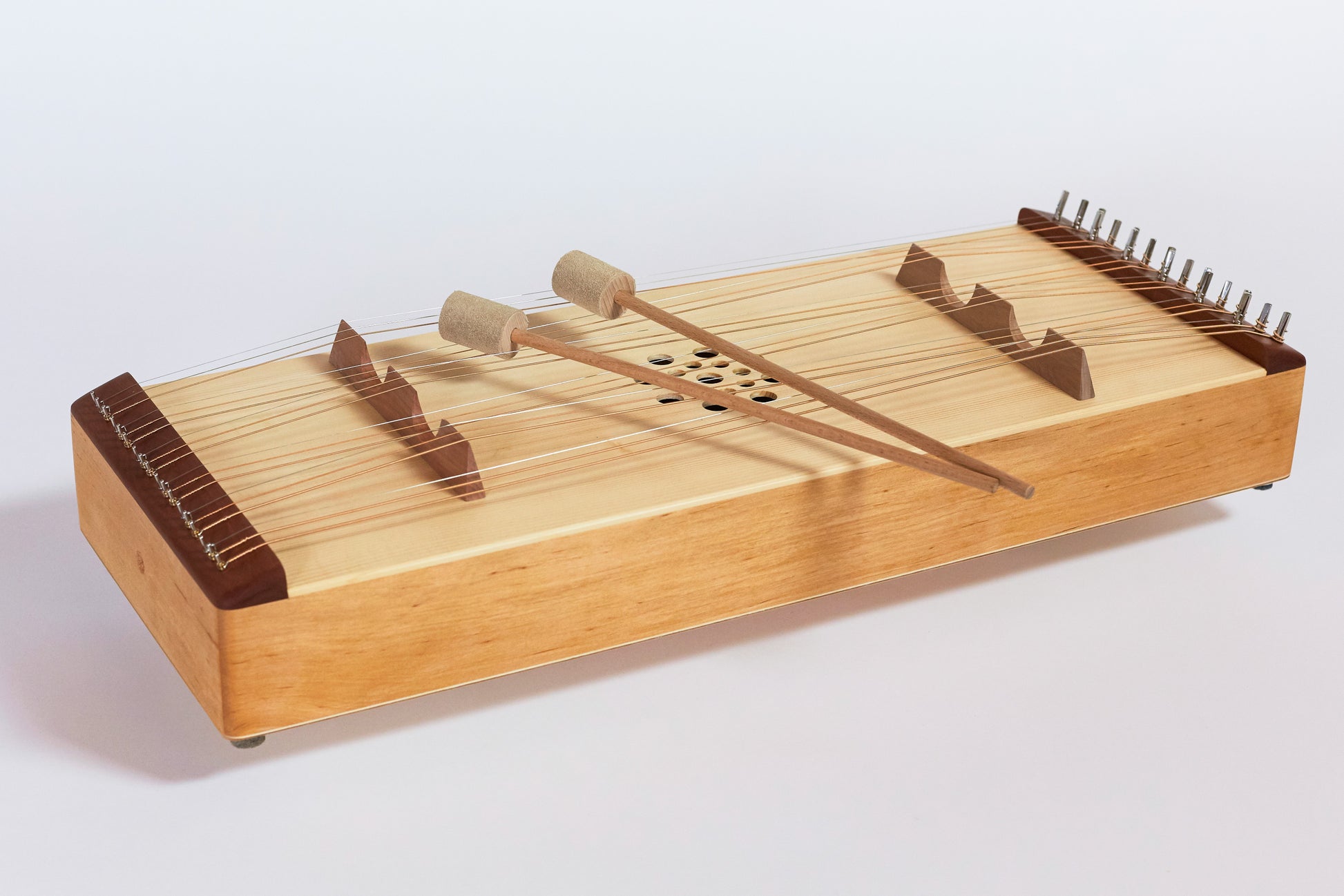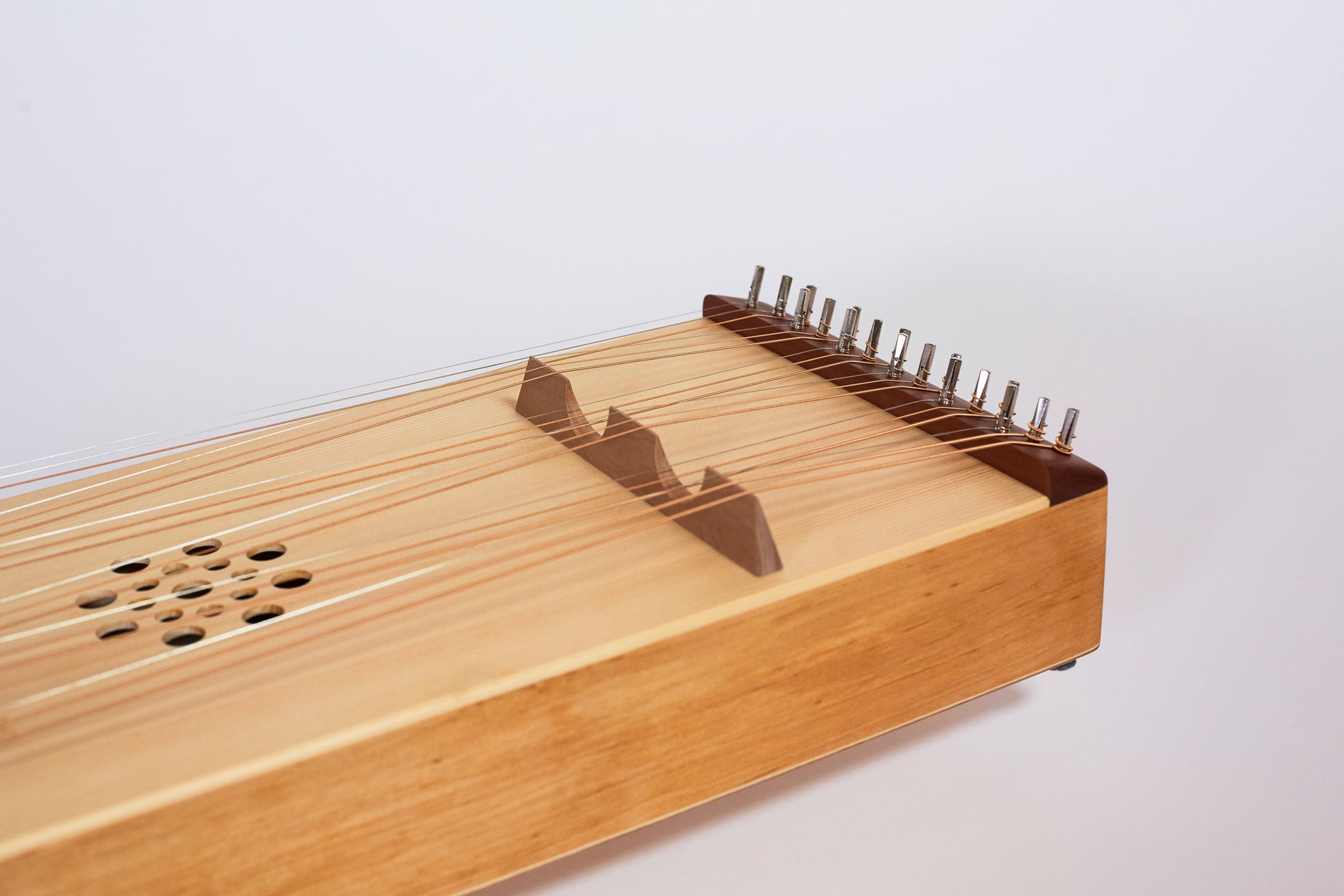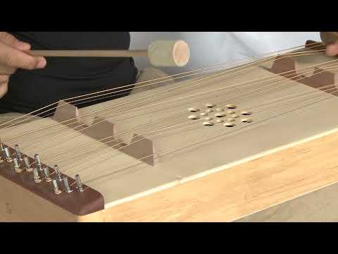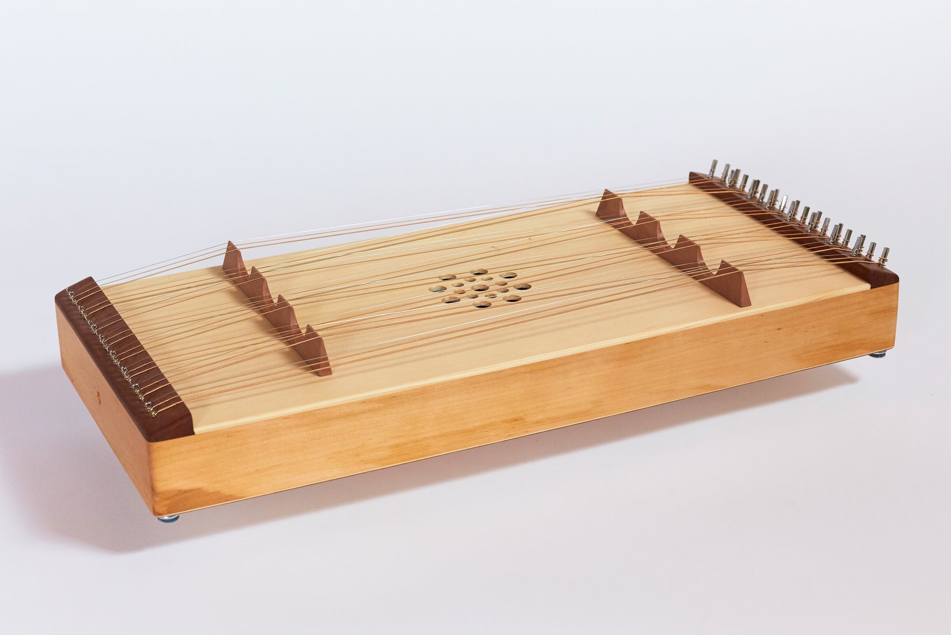 The harmony tambourine originally comes from France. In the Middle Ages it was used there as an accompanying instrument, similar to a dulcimer or a chord zither. Three strings each form a chord, which can be struck with a mallet, a plectrum or with the fingertips.
